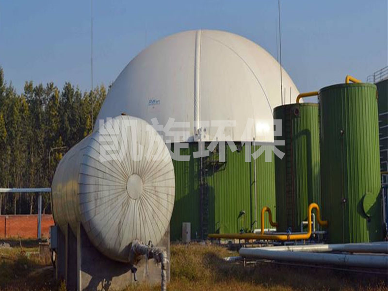 雙層膜沼氣罐外型為3/4球體,由鋼軌固定于水泥基座或厭氧罐罐頂上。主體由特殊加工聚酯材質制成,罐體由外膜、內膜、底膜(地上柜)及附屬設備組成,具有抗紫外線及種微生物的能力,高度防火并符合標準。