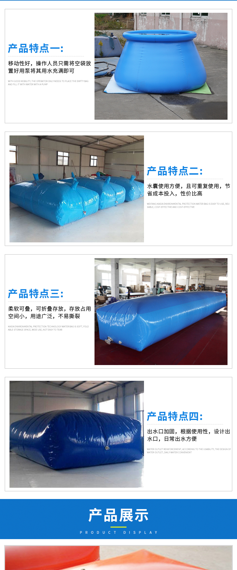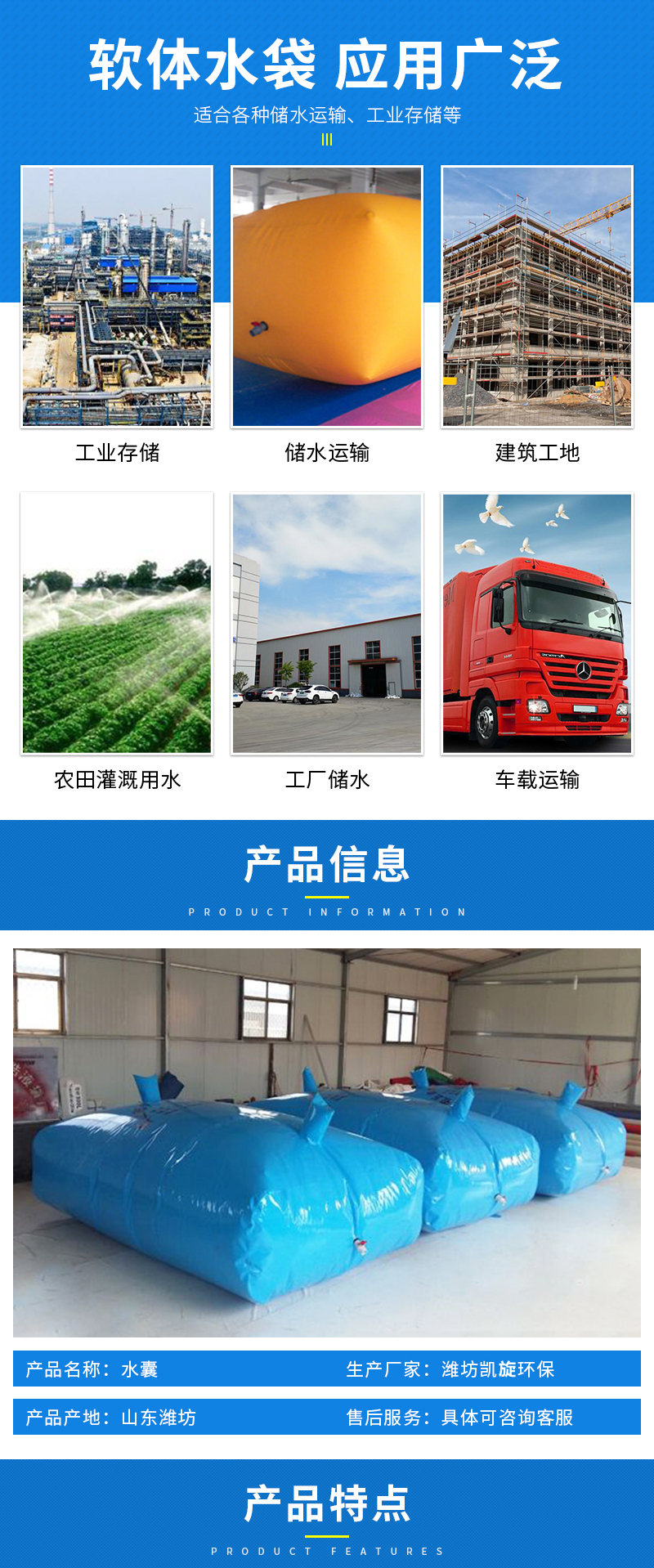 水囊高分子復合材料、耐磨、阻燃以及柔軟度好,可隨意折疊,儲藏方便,使用壽命長等特點。